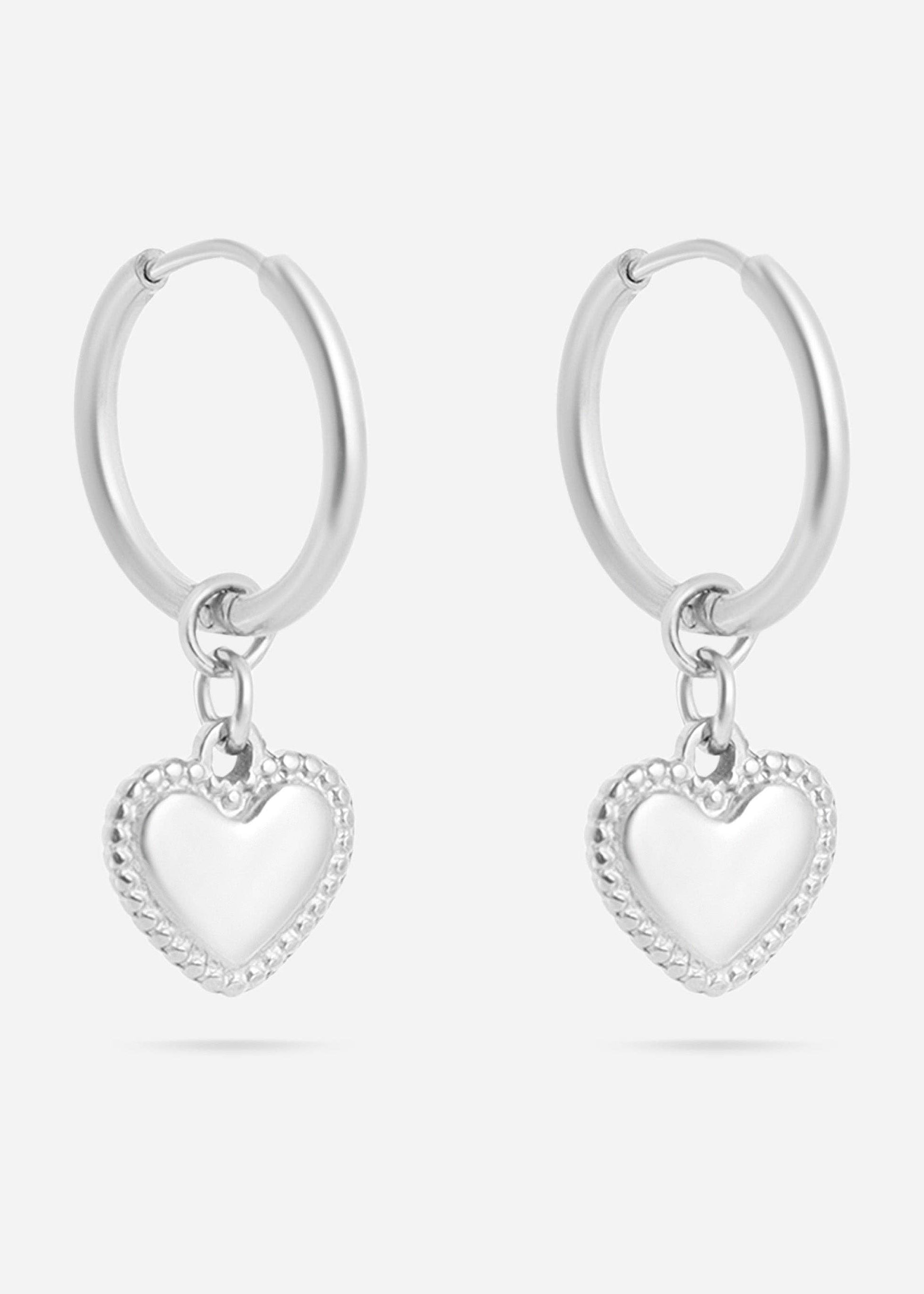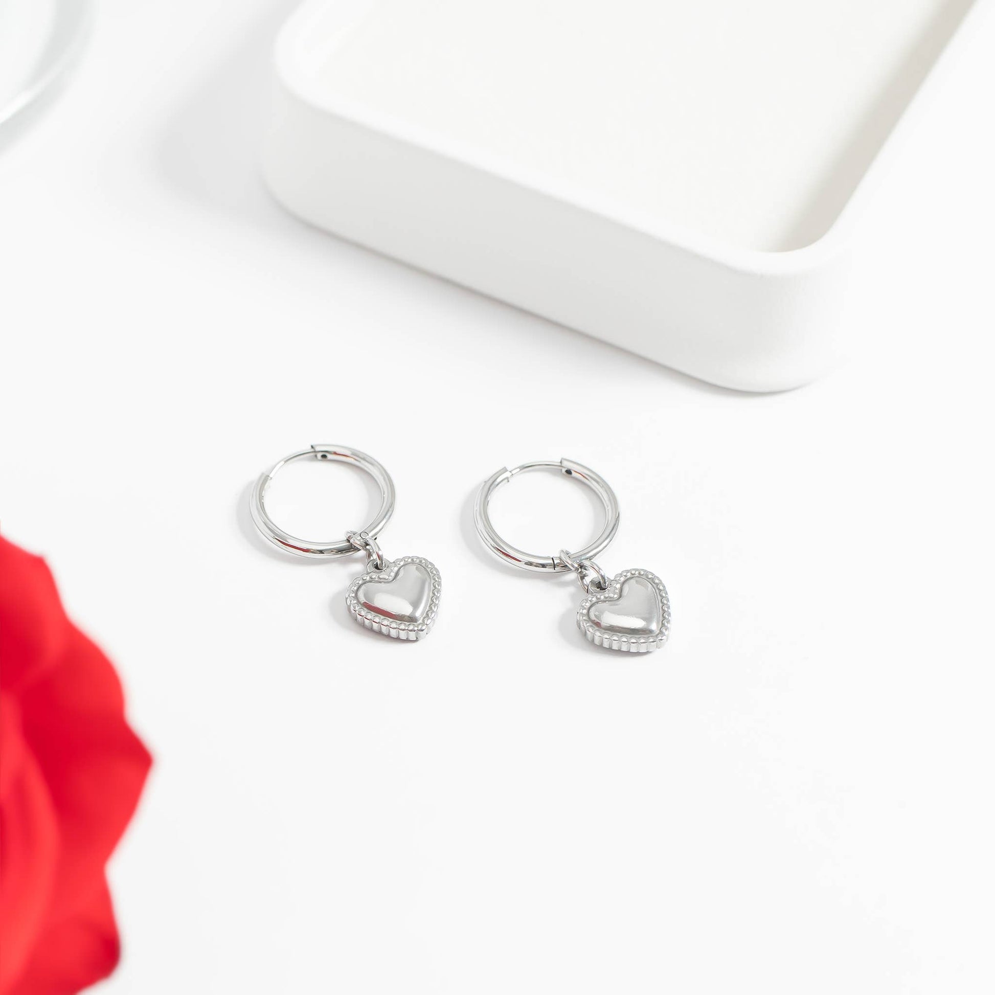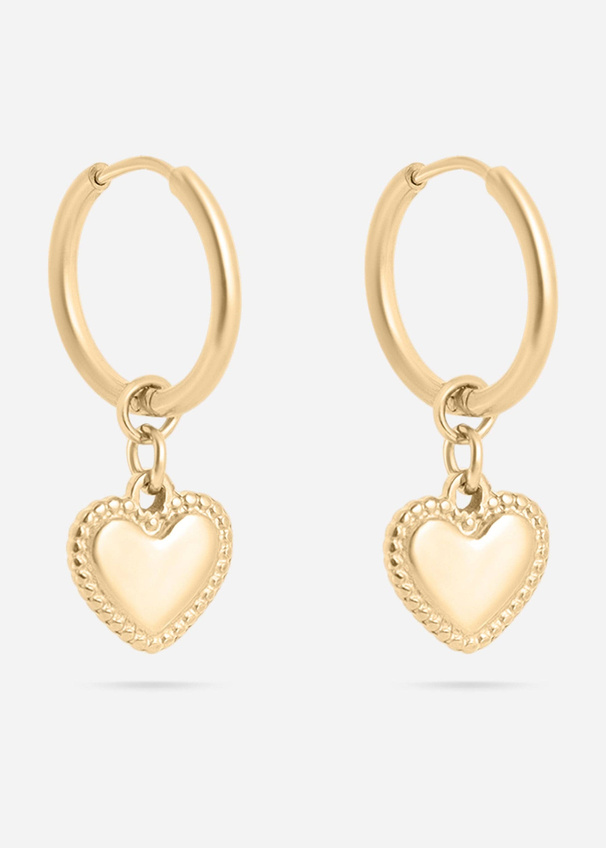 Heart Pendant Hoop Earrings 18K Gold PVD Stainless Steel