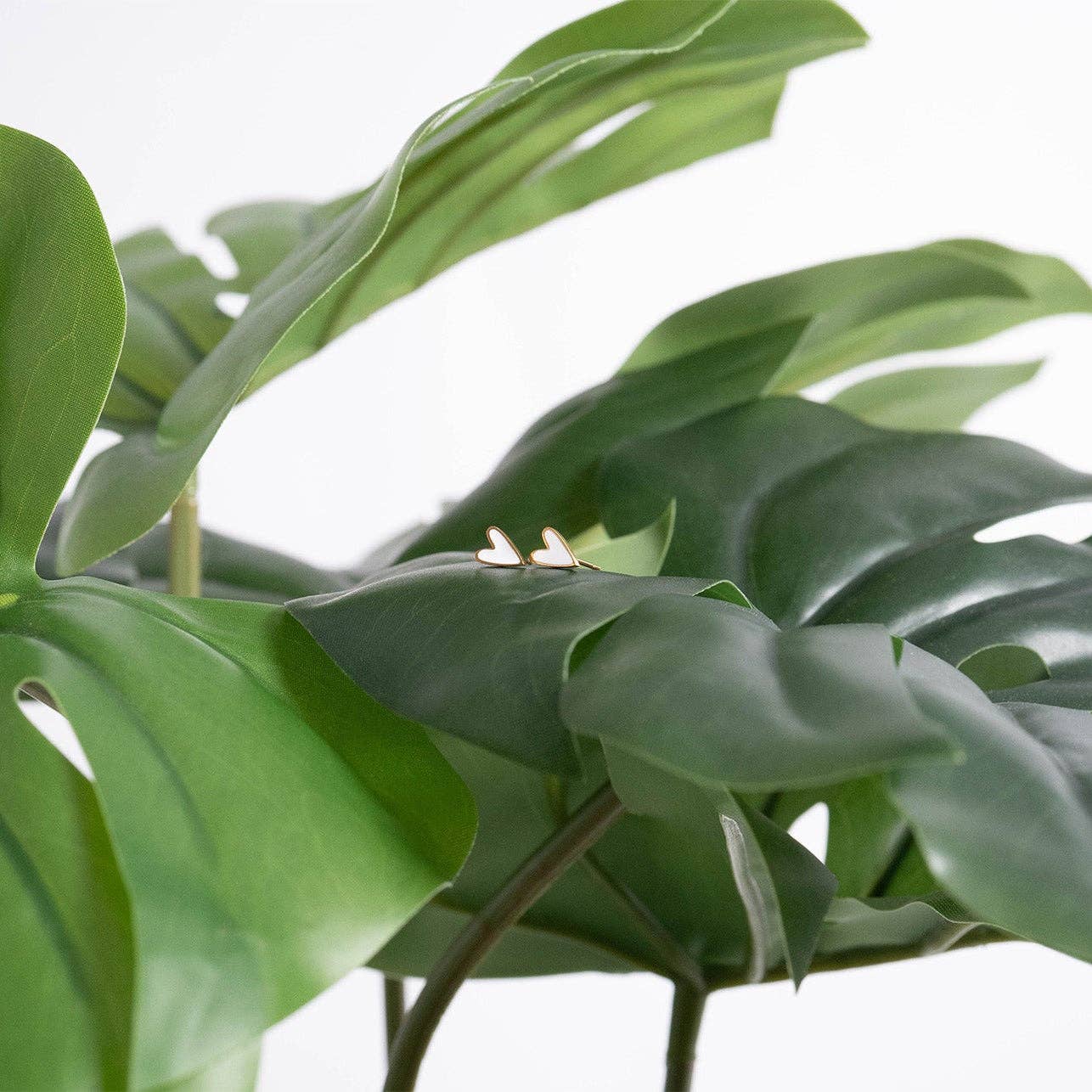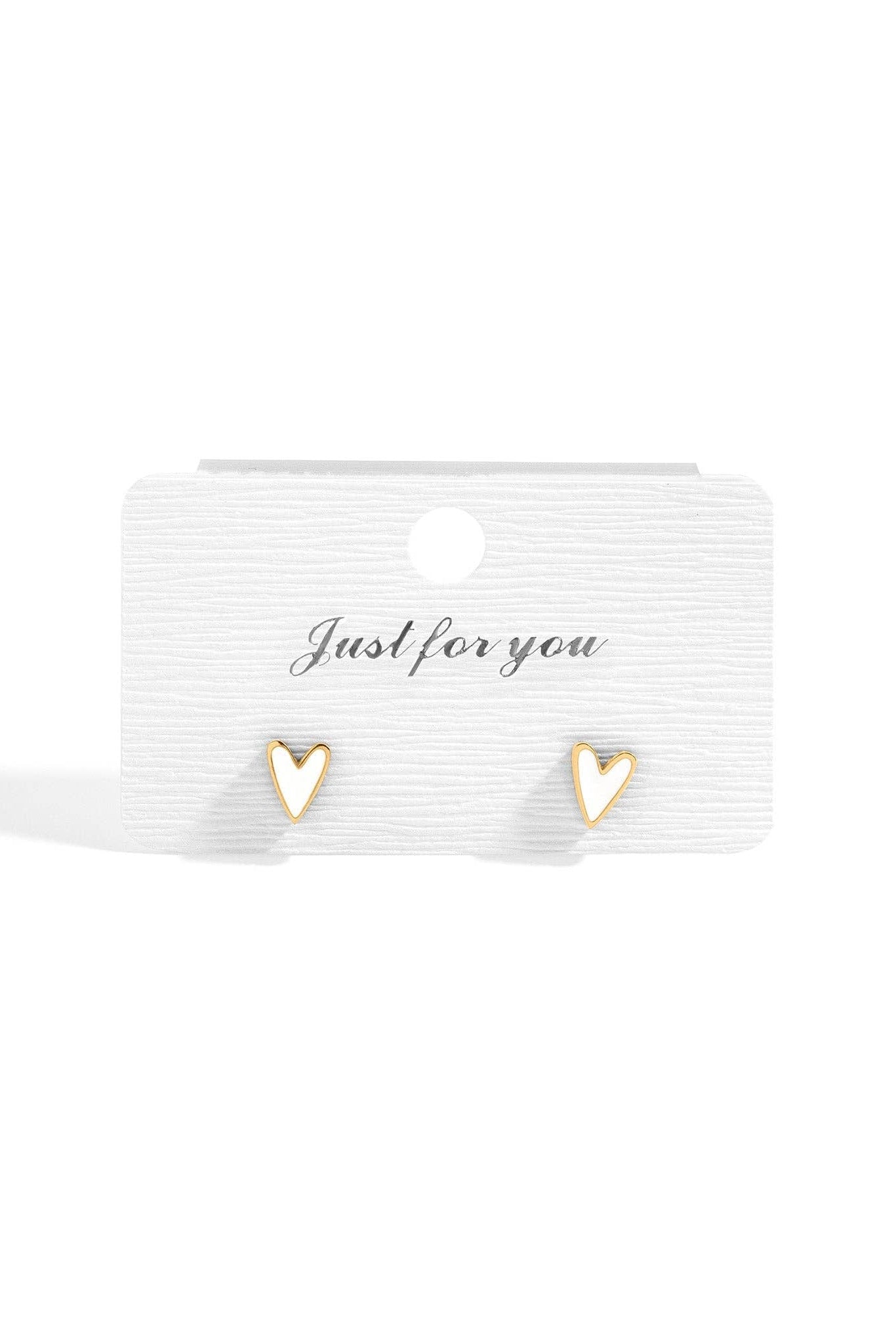 White Heart Stud Earrings 18K Gold PVD Stainless Steel