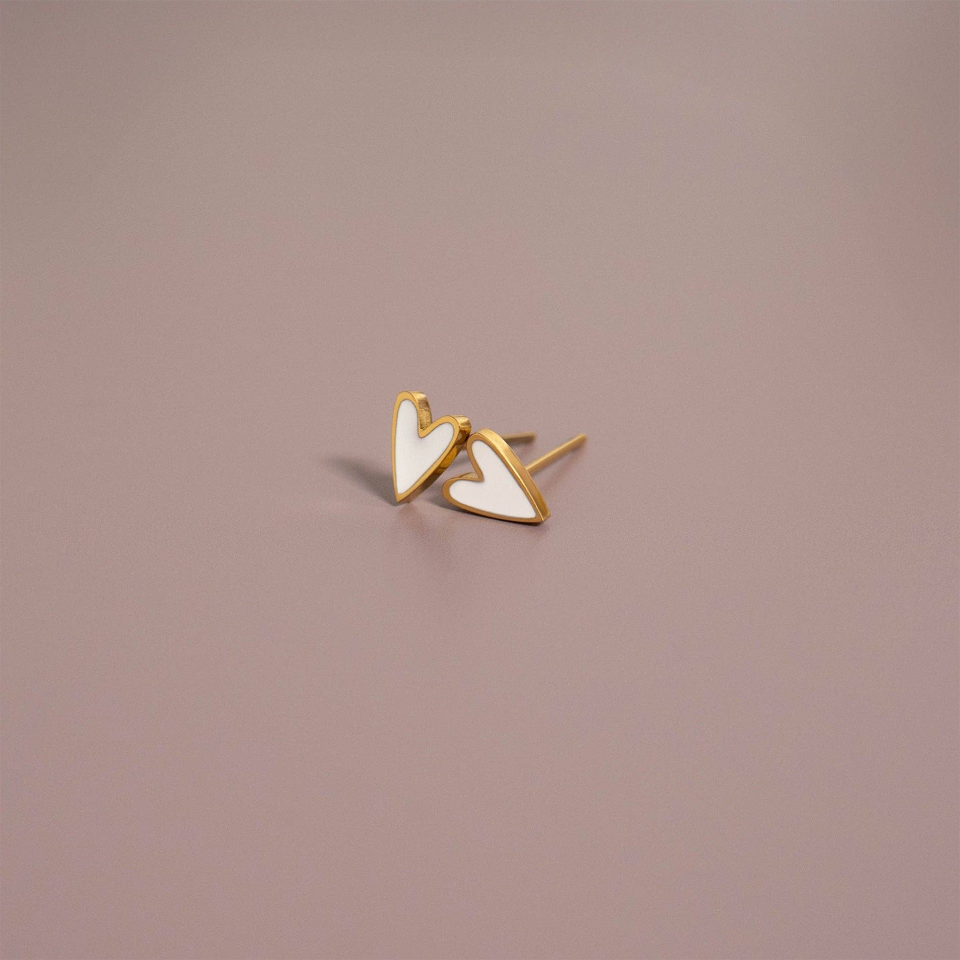 Delicate heart studs that bring instant charm to your everyday look. These lightweight earrings feature a lustrous 18K Gold PVD finish over hypoallergenic 316L stainless steel, paired with a crisp white enamel accent for understated elegance. Built to last through daily adventures—waterproof, tarnish-resistant, and impossibly comfortable. The perfect blend of whimsy and durability for anyone who loves a touch of heart.