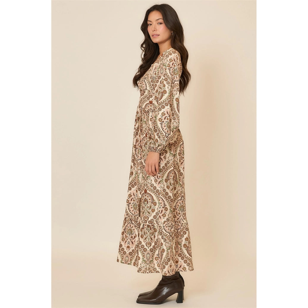 Twirl into any occasion in this charming maxi dress featuring a flattering V neckline and whimsical floral print. The lantern sleeves add a touch of vintage flair, while the smocked back panel creates a perfectly gathered silhouette. Best of all? Practical hidden side pockets keep your essentials close. Elastic sleeve hems ensure a polished finish that moves with you.