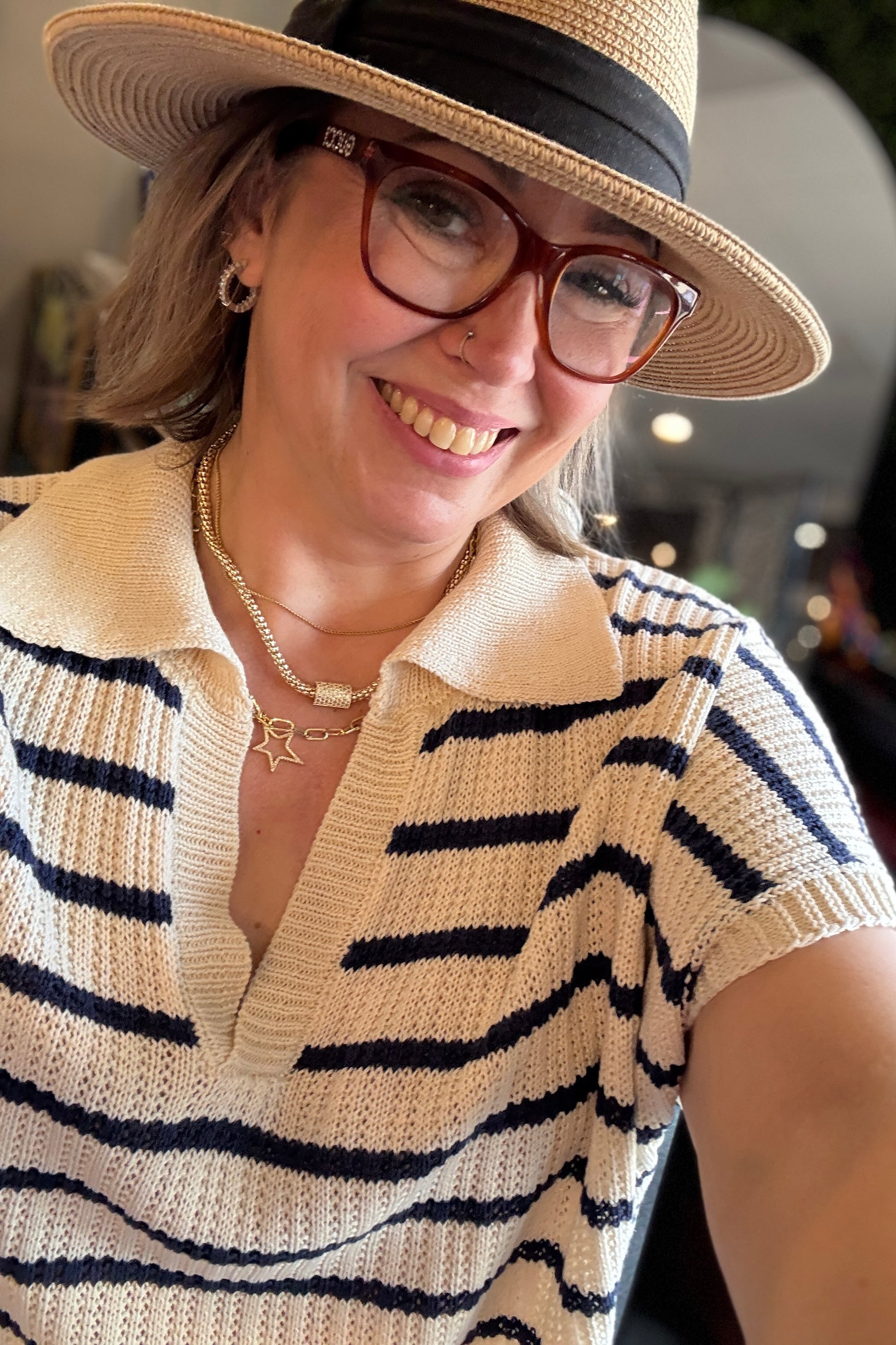 Loose Fit Striped Pullover Knit Top