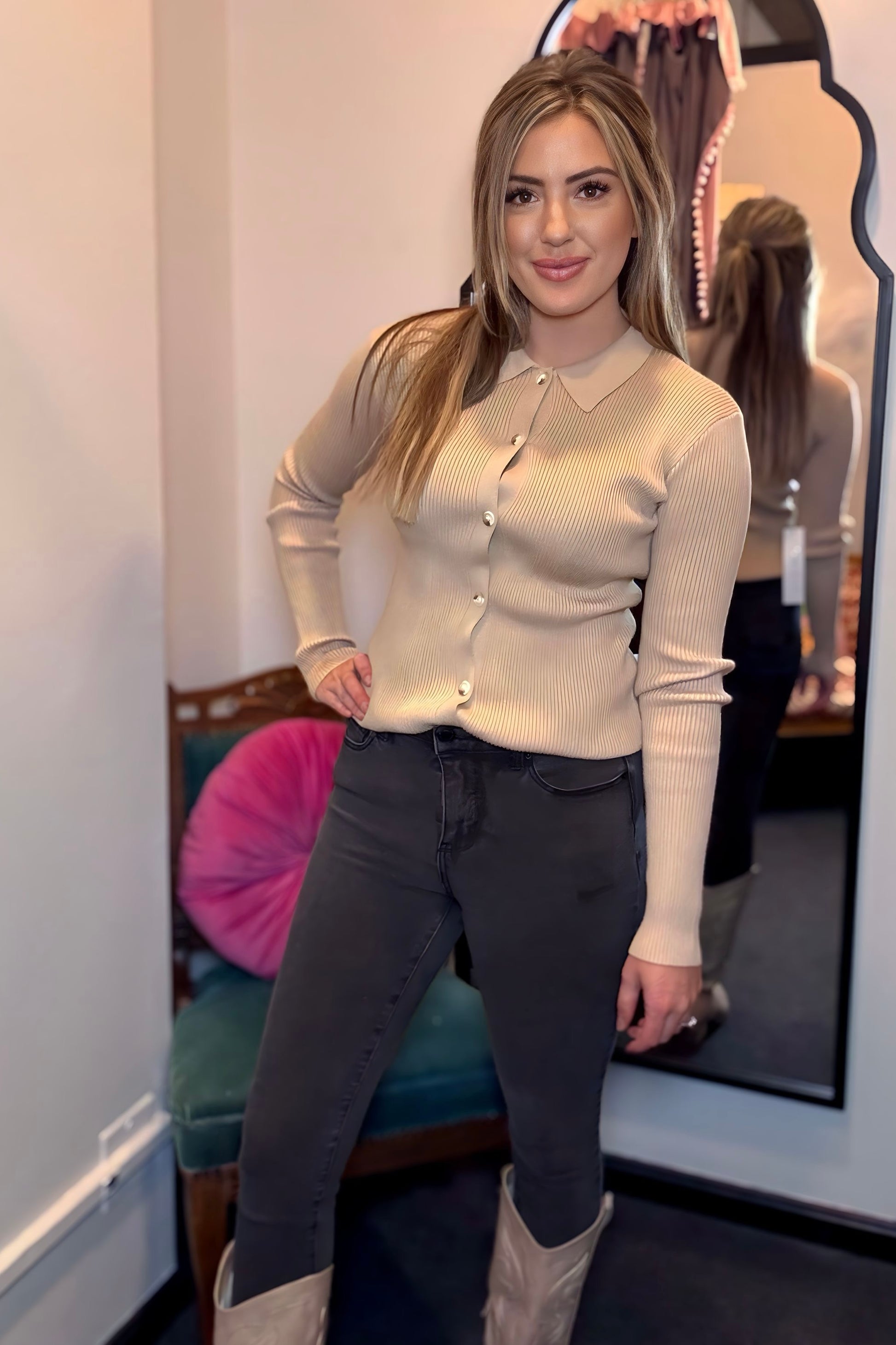 Cozy up in the in this Taupe Button Sweater, your new go-to for effortless style and warmth. Its soft taupe hue pairs perfectly with anything, while the charming button details add a playful twist. Whether you're lounging at home or stepping out, this sweater brings comfort and a touch of fun to your everyday look.