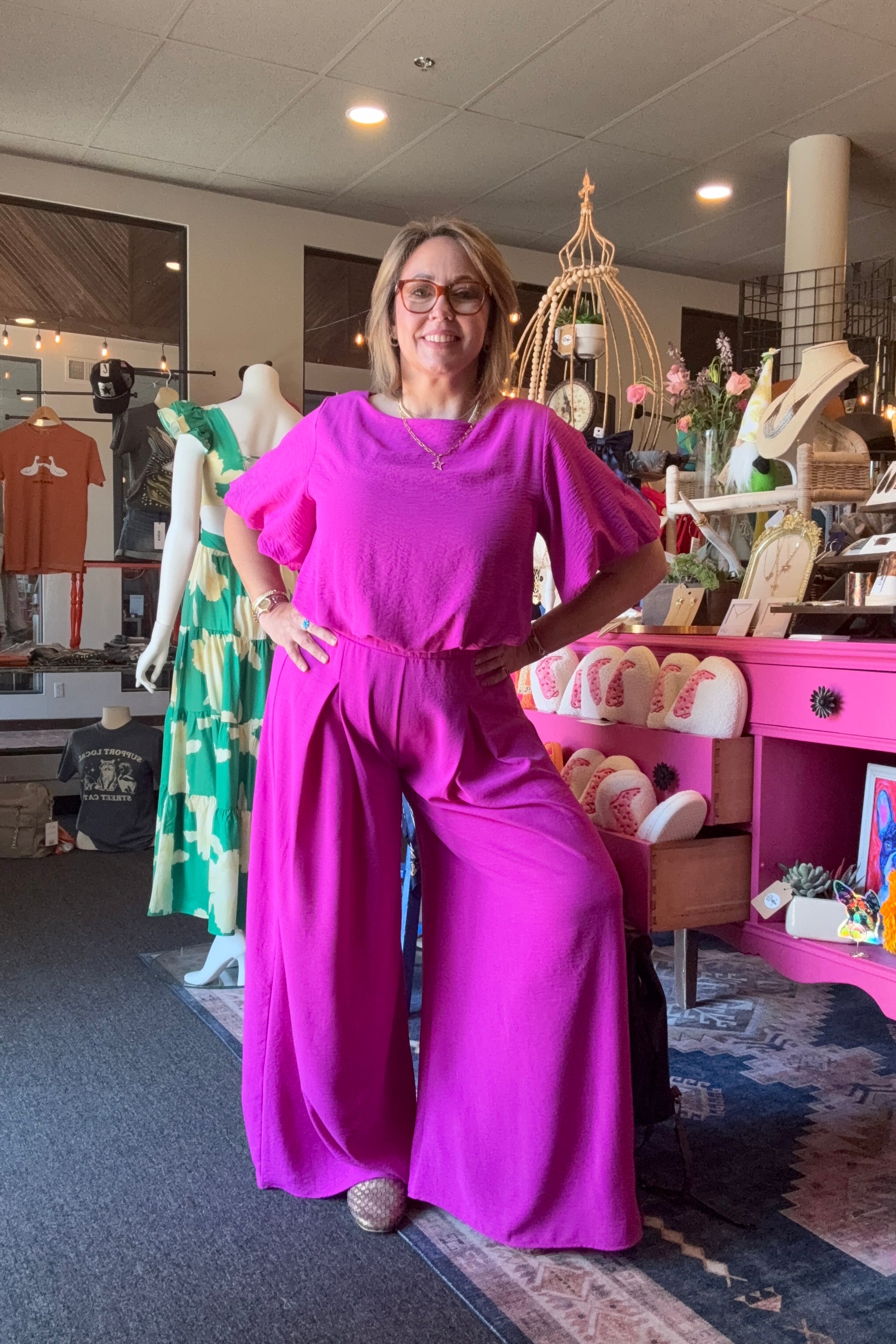 This top is made with Matte Crepe and Bubble Sleeves, giving it a unique and stylish look. It is also made in the USA. Complete the ensemble by pairing it with the matching Pants.