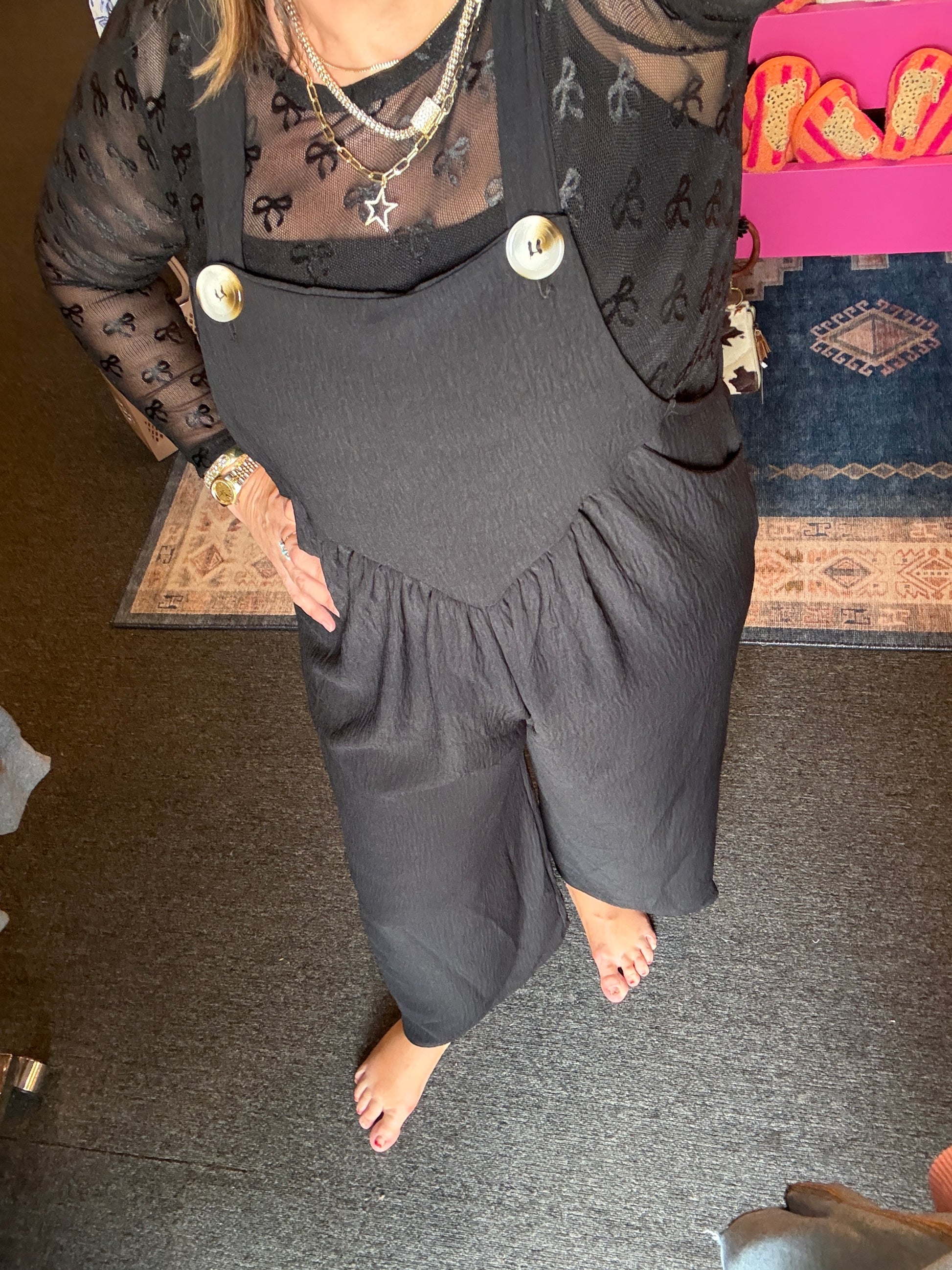 Slide into the Stay Calm Black Jumpsuit and embrace easygoing style. This chic, all-black piece blends cozy comfort with a dash of sass—ideal for when you want to feel relaxed yet stylish. Whether you're chilling at home or heading out, keep your cool and let your outfit shine. Crafted from lightweight, breathable fabric, it features a self-strap button and discreet side pockets for added convenience.